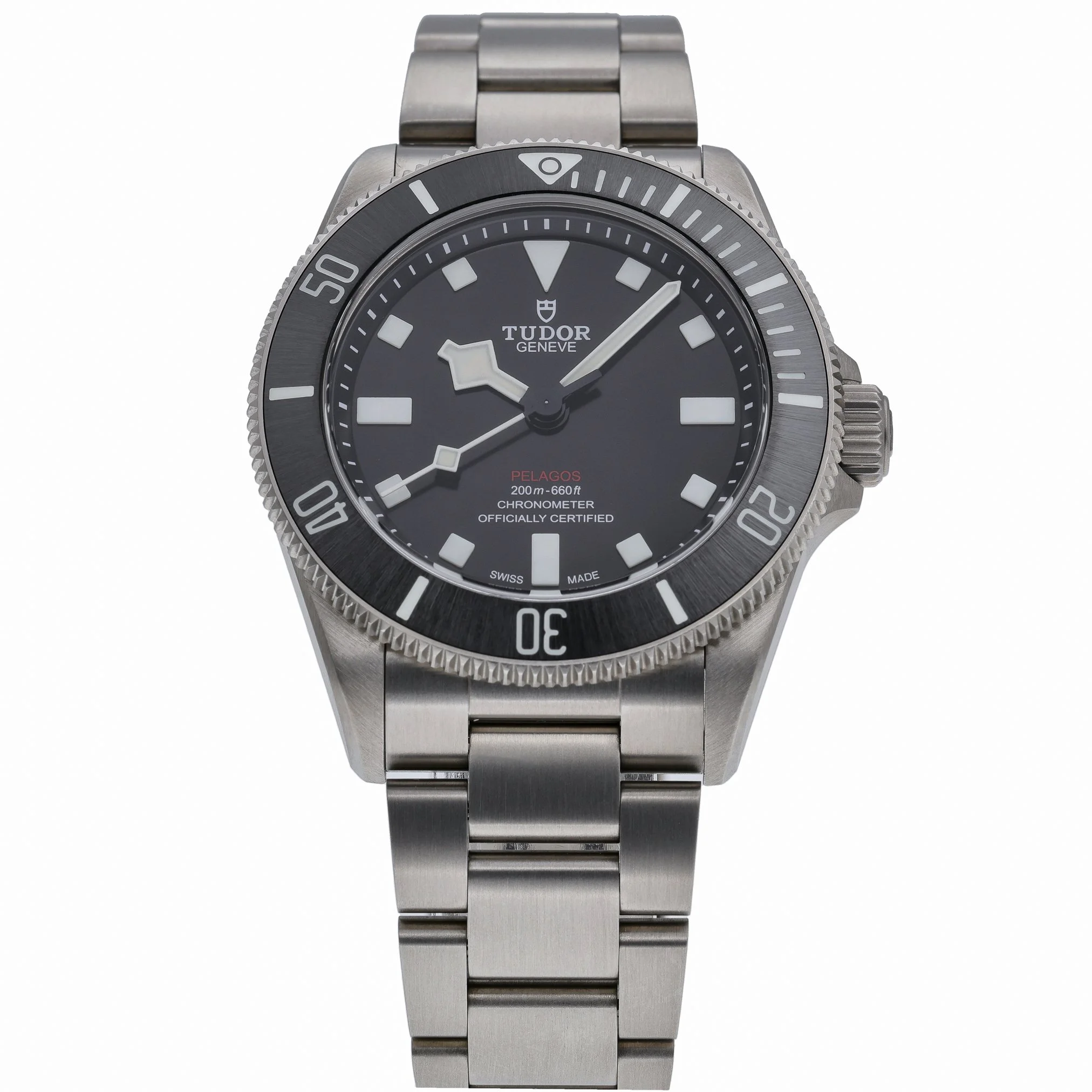 Experience the Tudor Pelagos 39 (Ref. 25407N), a refined diver that blends professional performance with everyday versatility. Crafted in lightweight titanium with a matching bracelet, its 39mm case houses an automatic movement safeguarded by a scratch‑resistant sapphire crystal and a unidirectional rotatable bezel for precise timing. The clean black dial offers excellent legibility, while the secure folding clasp ensures all‑day comfort. Manufactured in 2022 and presented in excellent condition, this example includes its box, original papers, and original white tag. With 200m water resistance, it’s ready for sea or city. Backed by Tudor’s 5‑year manufacturer’s warranty from the 2022 date of manufacture, plus our 14‑day return policy and next‑day delivery for a seamless purchase experience. BQ Ref: 53134.
