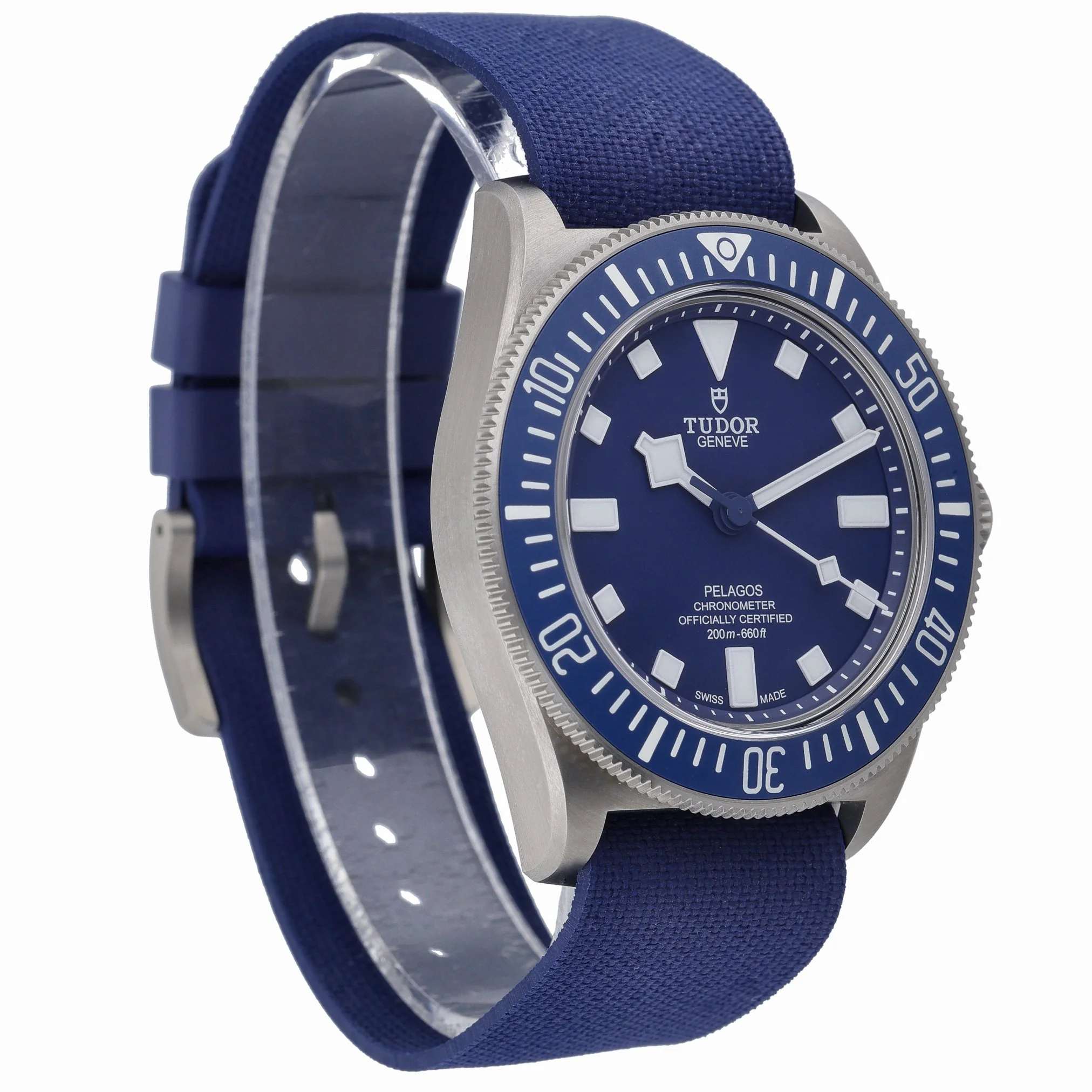 Discover the Tudor Pelagos FXD, BQ Ref 53154 (Model 25707B/22)—a professional-grade diver crafted in lightweight, durable titanium. This 42mm gents’ watch features a vivid blue plain dial under scratch-resistant sapphire crystal, a unidirectional rotatable bezel, and 20 ATM water resistance for confident underwater performance. Powered by a reliable automatic movement, it pairs comfort and security with a fabric strap and Velcro clasp, ideal on or off the water. Manufactured in 2022, this example is in excellent condition and is supplied with its original box, papers, and white tag. Backed by a 2 Year Warranty and our 14 Day Return Policy, with Prompt Delivery available.