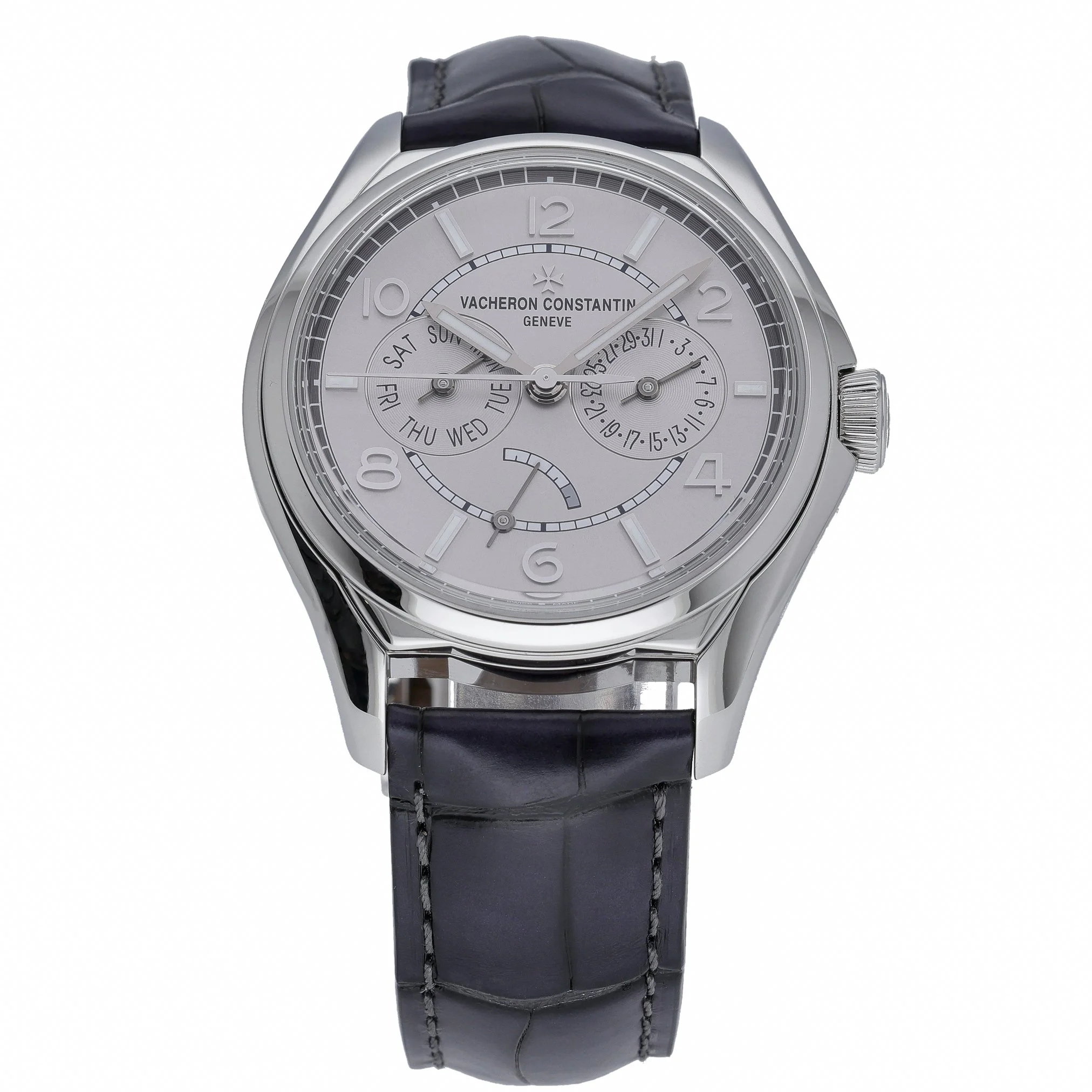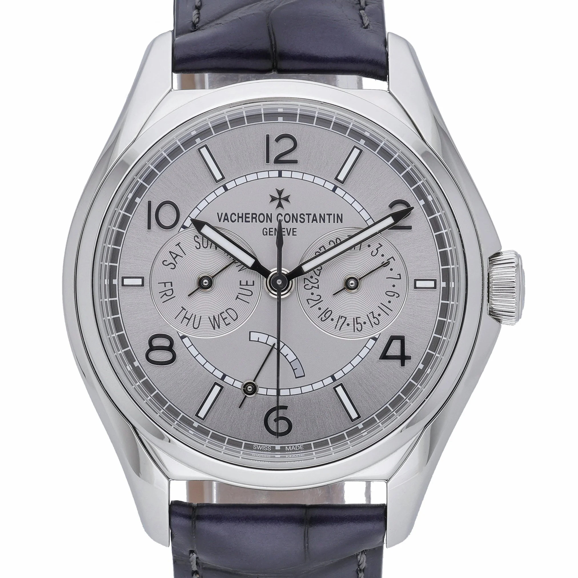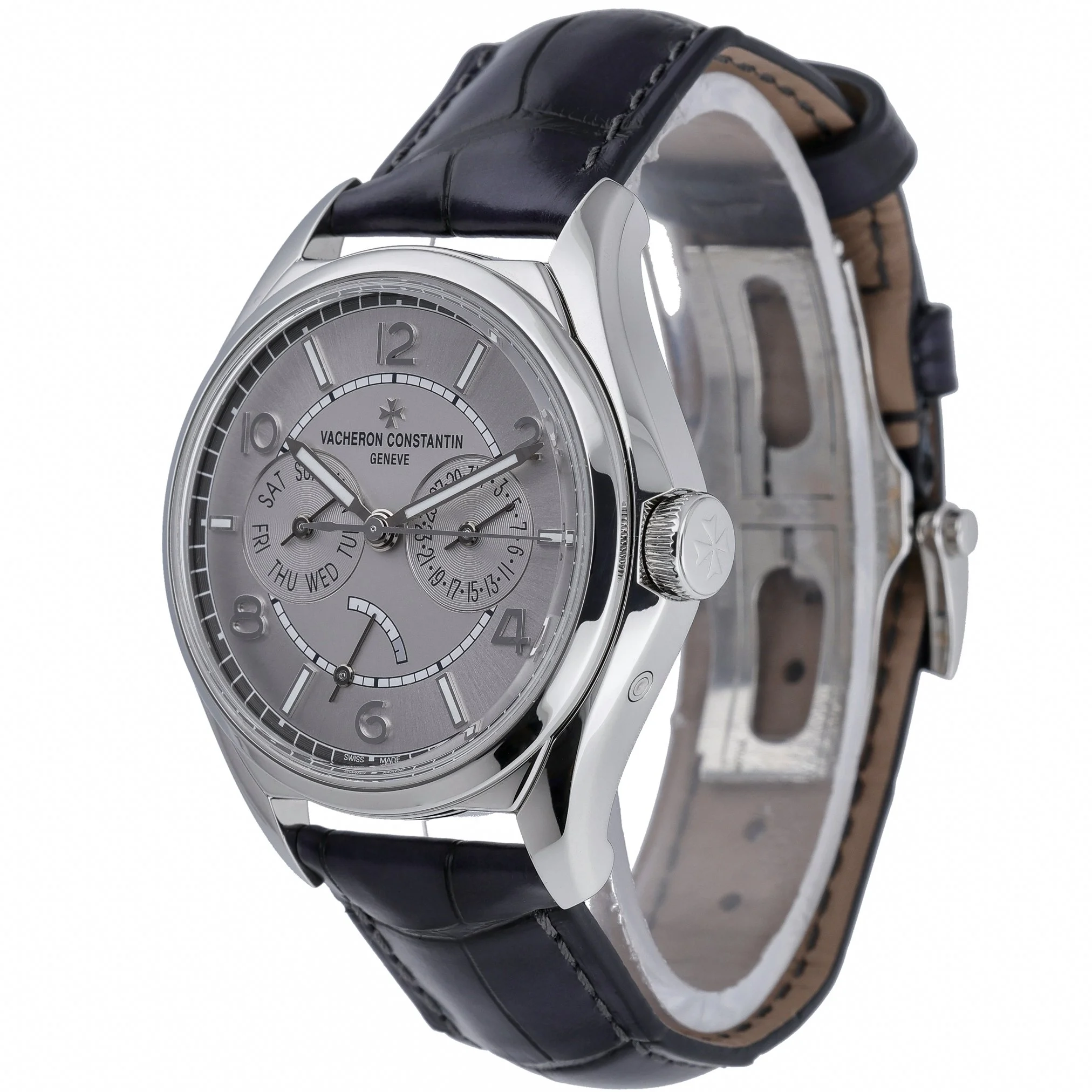 Vacheron Constantin Fiftysix (Ref. 4400E000A, BQ Ref 52546) in excellent condition, presenting timeless sophistication with modern reliability. The 40mm stainless steel case and steel bezel frame a refined grey Arabic dial protected by scratch‑resistant sapphire crystal. Powered by an automatic movement, this gents’ timepiece is paired with a luxurious crocodile leather strap secured by a folding clasp for all‑day comfort. Water resistant to 30 ATM, it offers versatile wearability from desk to dinner. Manufactured in 2022, this watch is supplied with its box and original papers for complete peace of mind, and is backed by a 2 Year Warranty. Enjoy Prompt Delivery and a 14 Day Return Policy. An elegant, contemporary expression of Vacheron Constantin’s watchmaking heritage.